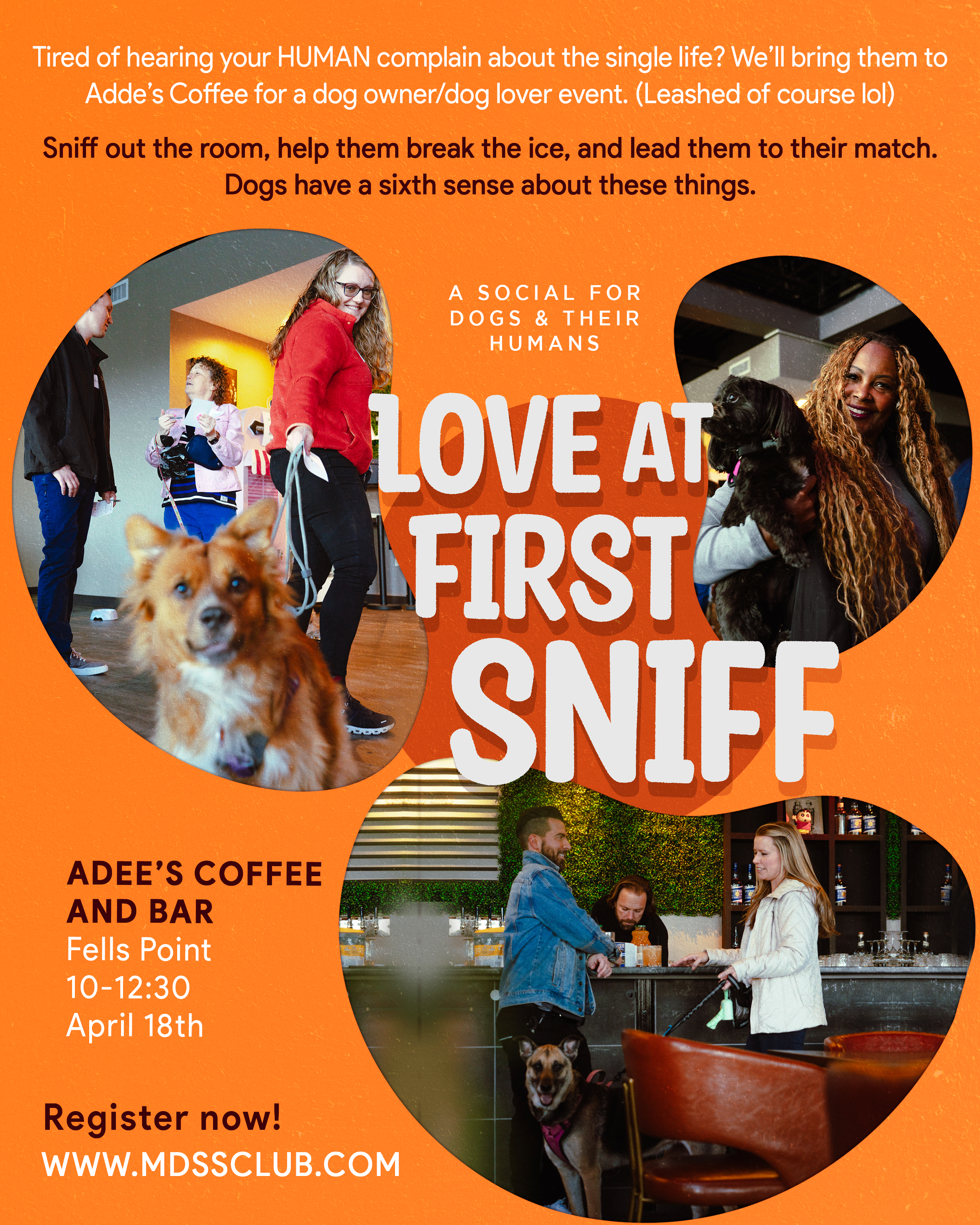 Bring them to Adee’s Coffee and Bar for a singles social designed for dogs, dog owners, and dog lovers. Leashes required, of course.